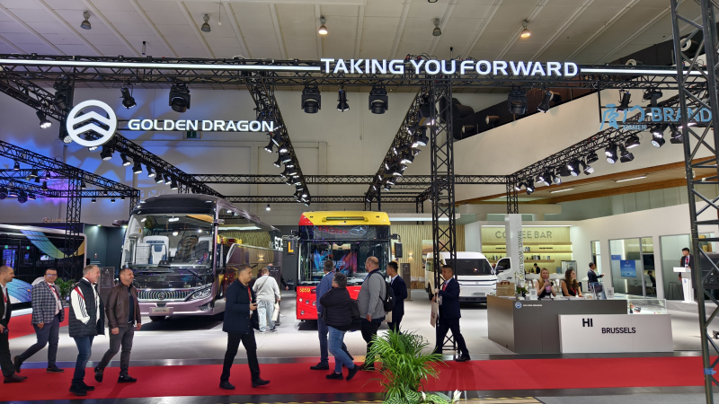 当地时间10月4日上午,金旅客车于比利时布鲁塞尔世界客车博览会现场展示全新一代高端客车GC15,同时亮相的还有PIVOT E15纯电动城市客车及GECKO纯电动轻型车。