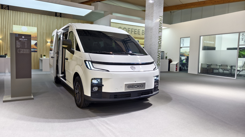 金旅客车已在轻型商用车领域深耕多年,累计销售各类纯电动轻型商用车2.5万辆。本次发布会上亮相的新能源轻型商用车GECKO采用子弹头流线型低风阻造型设计,是顺应市场需求打造的全新品类。它采用滑板底盘架构和模块化设计,并具备L2级组合辅助驾驶功能,可在-35℃~55℃的环境温度下全天候稳定运行。